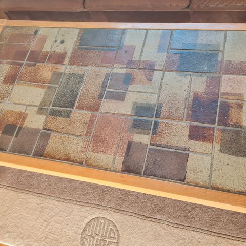 Retro sofabord, egetræ, b: 73 l: 133 h: 40, Sofabord i massivt egetræ med kakler fra 1980erne.