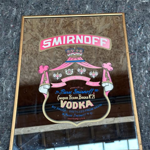 Shaken not stirred. Vintage Martini-spejl (33,5x23,5 cm) samt 5 Martini-glas med diskret Martini-logo. Rammen har lige fået en ny gang olie, så den står skarp! Til herreværelset, man cave eller hjemmebaren? Sælges kun samlet.