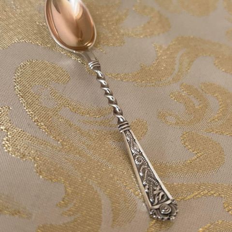 Meget smuk, forsølvet ske fra det svenske firma HALLBERG, antagelig fra 1940’erne. Design: Heinz Decker. Ca. 14 cm lang. Skeen er i flot stand. Der er nærmest ingen brugsspor. Sender gerne.