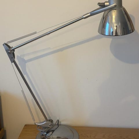 Skrivebordslampe, Ukendt, Bordlampe i sort metal, grå “hals” der kan justeres. Virker som det skal. Ukendt mærke