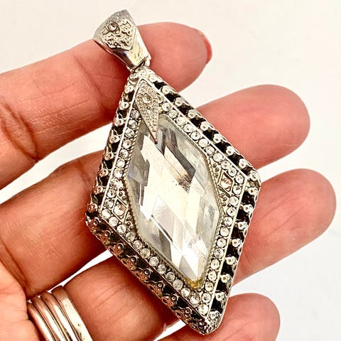 Vedhæng, forsølvet, Krystal vedhæng med slange kæde