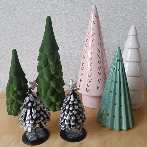 Keramik juletræer i grønlige farver, Flotte keramik juletræer i grønlige nuancer. Guld top. Flot stand.sender gerne mod Porto.