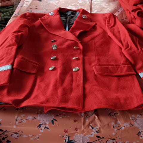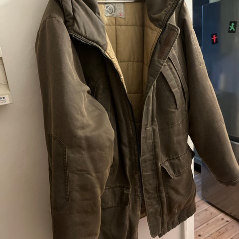 Jakke, str. XL, Postvæsenet, Rød, God men brugt, Fin ældre og varm vinterjakke fra det gamle postvæsen. Den er rød har en lille plet ved lomme fra kuglepen. Masser af gode lommer - også med lynlås.