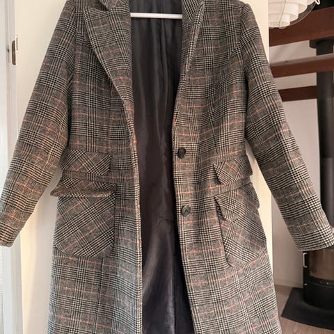 Sælger en ensfarvet silkekjole (ses på foto nr. 2), der passer til frakken i en af mine andre annoncer.