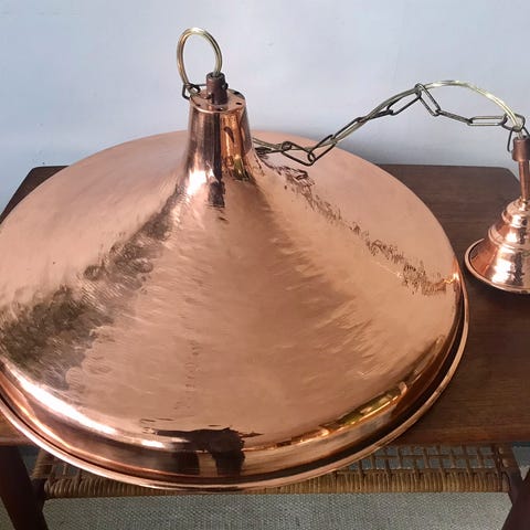 Jens Møller Jensen, Jj hammer og lyskjær, pendel, Stor flot kobber pendel jj hammer og lyskjær, ca 1970, har en dia på 50 cm. Har stempel. Sender gerne!!!!