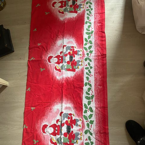 Juledug, Fin juledug med julemænd. Ca.210 x 148 cm. Sender gerne men køber betaler selv for en eventuel forsendelse.