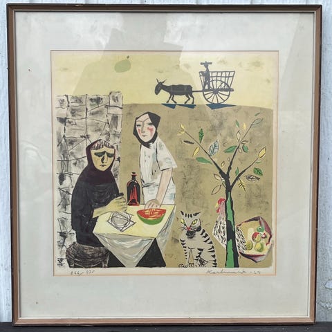 Litografi, Xxxx, motiv: Kirke, b: 60 h: 52, Billede af kirke i mahogni ramme … 100år