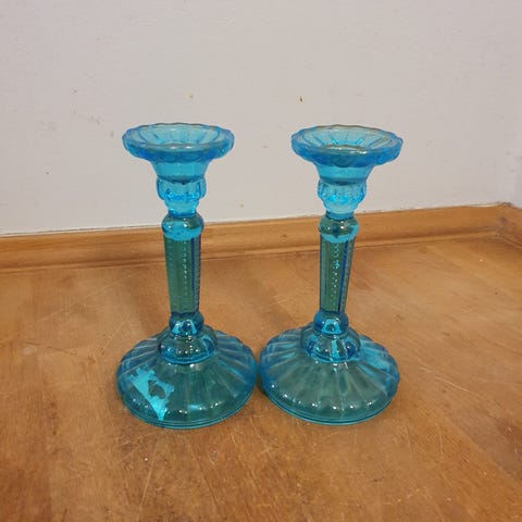 Glas lysestager, blå lysestager, blåt glas, vintage lysestage