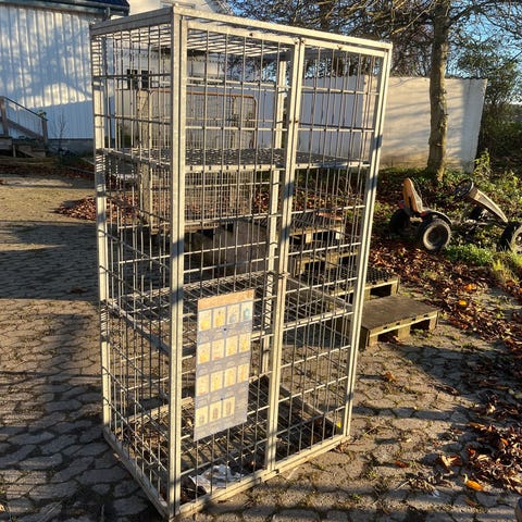 Stål brændebur, To stk galvaniceret stålbrændeburer på hjul højde cm, 165 bredde cm, 70 dybde cm, 80 nypriser kr 3250 sælges for kr, 1000. Pr, stk, ring 42302588. MvH, Per
