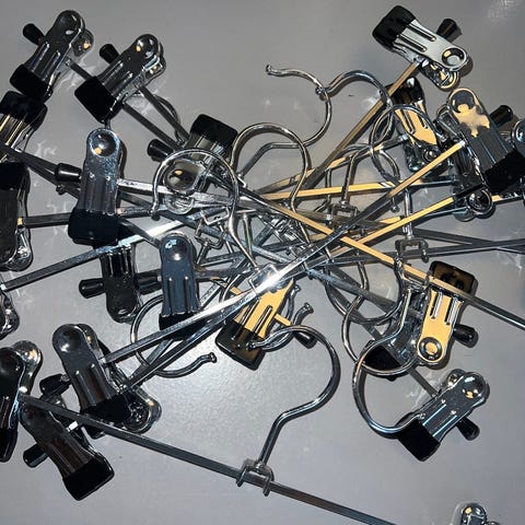 Andet, Metalklemme på krog, MAWA, str. 9,5cm, Metal, Metal, Ubrugt, Solide og slidstærke metalklemmer på krog. Jeg har omkring 300 styks, hvor 2 kasser med 100 i hver er helt nye og resten er brugt få gange, så de er næsten som ny. Normal pris er 10kr stykket.
