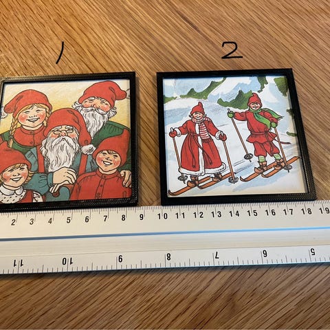 Dukkehus-møbler, Juletid Nr 1 er Solgt, Flotte jule billeder i sorte rammer med søde nisser til dukkehuset eller nissebo. nu vi nærmere os den hyggelige juletid sælges pris 25 kr PR STK. jeg sender køber betaler Porto