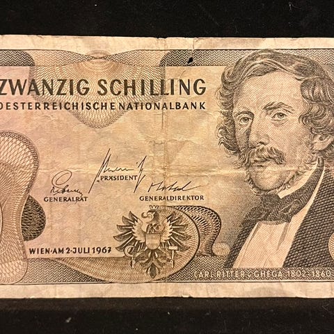 Vesteuropa, sedler, 20 Schilling, 1967, Østrig