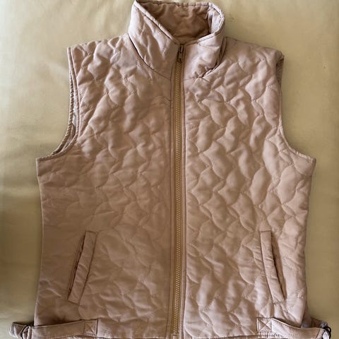 Vest, Vatteret vest, Only, str. L, Armygrøn med orange. Rød med blå og hvid, Polyester, God men brugt, To varme veste med lommer uden lynlås til hænderne. Den armygrønne har en lomme med lynlås ved bryst
