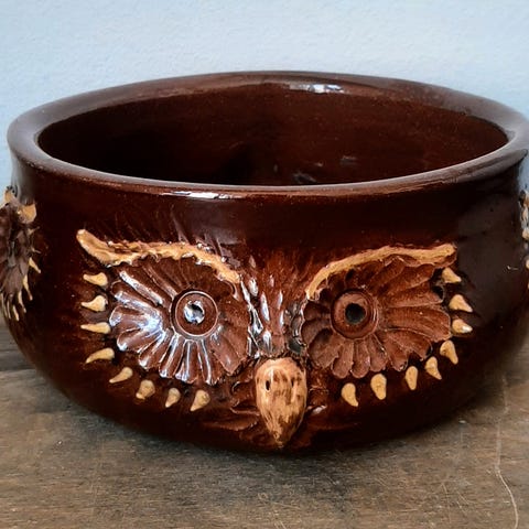 Keramik skål med ugler, Smukt lille glaseret keramik skål med ugler.