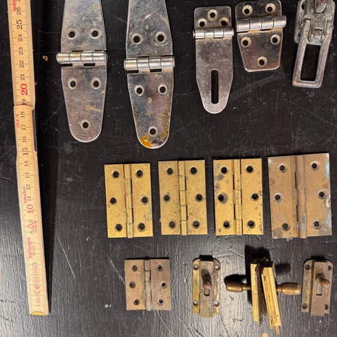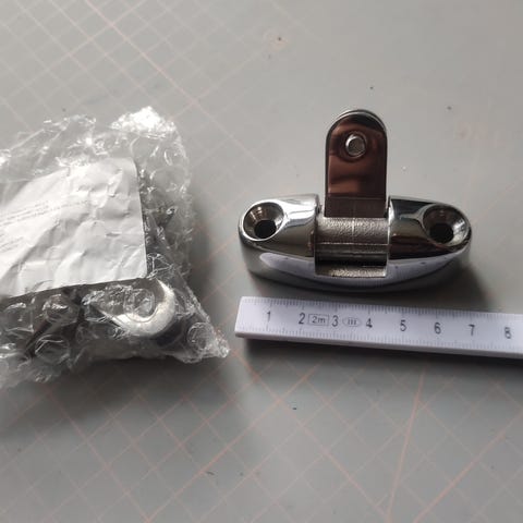 Nye rustfrie hængsler til marinebrug. ROCA type forkrøbbede hængsler til overs fra bådbyggeri.
