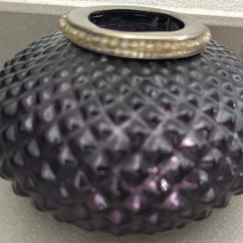 Glas, Lysestage / vase, Lene Bjerre, Meget smuk med sølv kant og smukke glas blomster