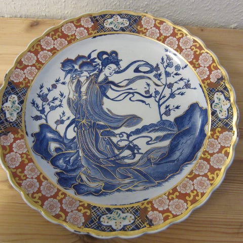 Japansk fad og askebæger, Formentlig Imara. Meget gammelt. Fejler intet. Ingen afslag. Fad med ophæng, som kan aftages. Giv et bud