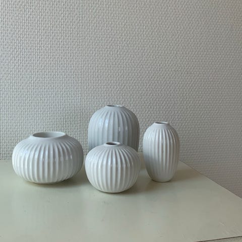 Vase, 1 vase og 3 lysestager, Kähler 1 vase og 3 lysestager i hvid/sort. Har kun stået til pynt. Trænger til nye ting i huset nu ??