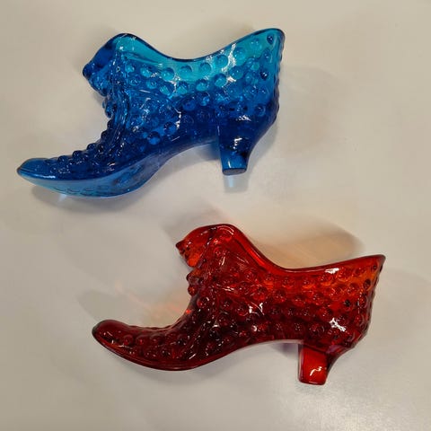 To Fenton glas skåle. Irideret presset glas fra USA. SÅ smukke med regnbue skær.