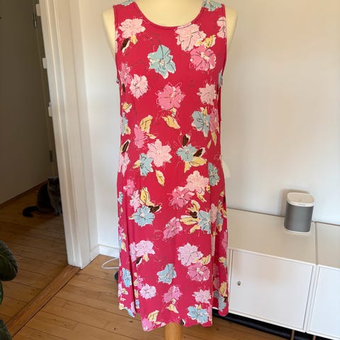 Sommerkjole, Jackpot, str. M, Rød med blomster , Viskose, Næsten som ny, Super smuk og skøn slå-om kjole, der kun har været brugt få gange. I god dansk kvalitet. Går til ca midt på skinnebenet. Kan åbnes helt og bruges som kimono.