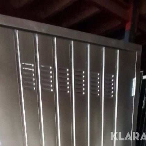 Ståldør, andet materiale, Stalddør er beklædt med rustfriplade på den ene side plus kam