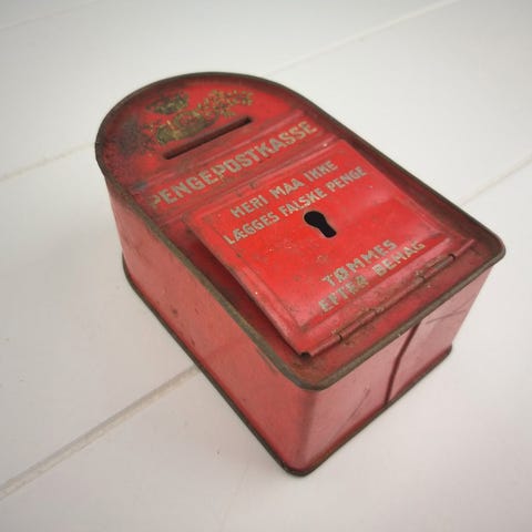 Sparebøsse, Pengepostkasse i metal. Incl. nøgle.