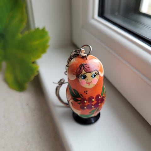 2 - håndmalet russisk broche; blomstermotiv. Træ. Signeret.