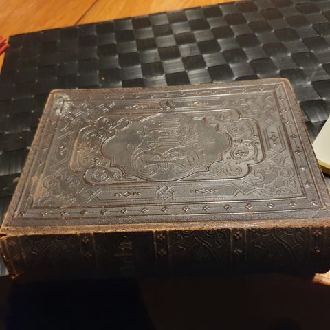 Bibelen 1874, bibelen, år 1874, Bibelen, eller Den hellige Skrift, indeholdende det Gamle og det Nye Testamentes kanoniske Bøger. Med gotisk skrift.