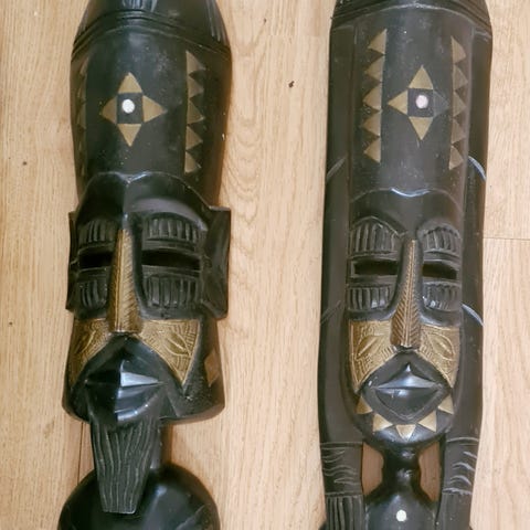 2 særdeles skønne og dekorative “mandshøje” håndskåret træ skulpturer - træ reoler mm