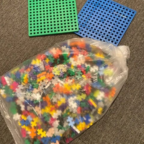 124 stk i alt. Blot åbnet for at samle med en ekstra pose klodser.