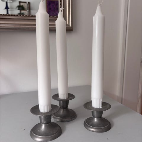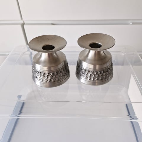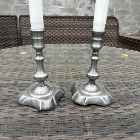 Tin, Lysestager, 2 fine tin lysestager som passer til kronelys.