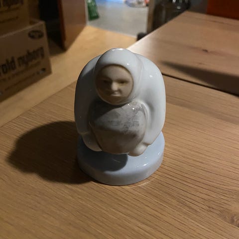 Stående grønlænder 9 cm, hvid, Mathias Lavstrøm Inuit I fin og hel stand.