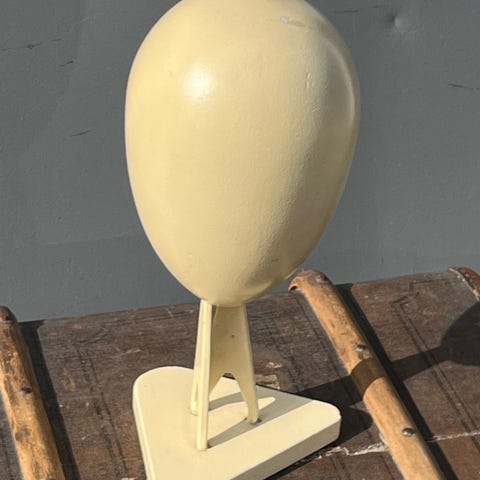 Hattehoved, Udtryksfuldt og unikt patineret fransk buste / mannequinhoved / hattehoved fra 70’erne. Helt enestående for den som forstår at pryde hjemmet med særligt kuriøst blikfang.