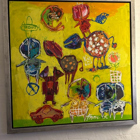 Akrylmaleri, Finn Sørensen, b: 100 h: 100, (fra ikke-ryger-hjem). Se mere her: https://finnsorensen.dk