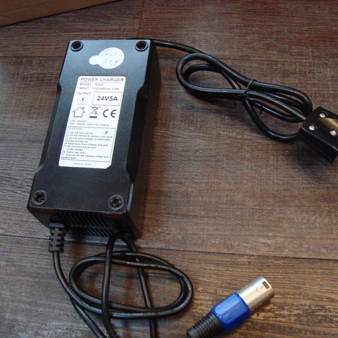 Elscooter Oplader 24volt, Ny ubrugt 24volt 5Ah oplader til Elscooter. Passer de fleste modeller som har 2stk 12volt blybatterier/GEL Rundt 3 benet hanstik, xlr.