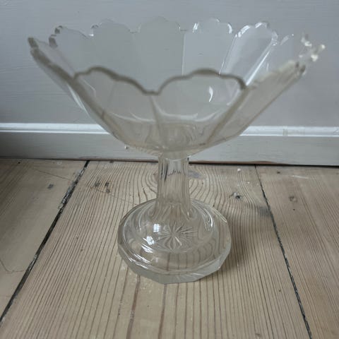 Skål på fod i noget, som jeg formoder er bronze. Ø ca. 16,5 cm, højde ca. 15 cm. Med smukke detaljer og i fin stand.