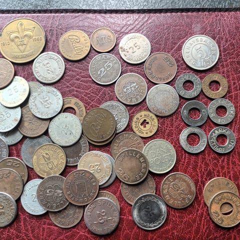 Flotte, sjove og sjældne gamle danske spillemønter, spillemærker eller jetoner