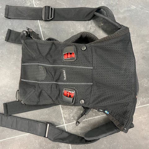 Meget kraftig og robust kvalitets bæresele med tilbehør i sort med røde detaljer fra det anerkendte mærke; BabyBjörn.
