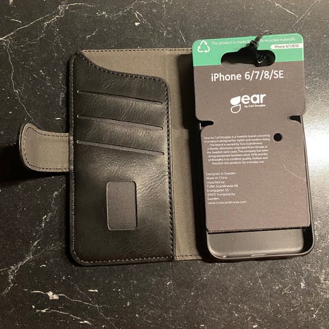 Fabriksny/ubrugt iPhone SE læder flip cover pung med strop.