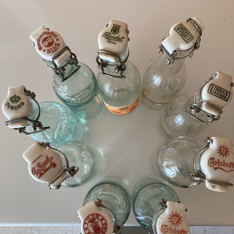 Flaske pynten med flag er der lidt flere af 40kr stk