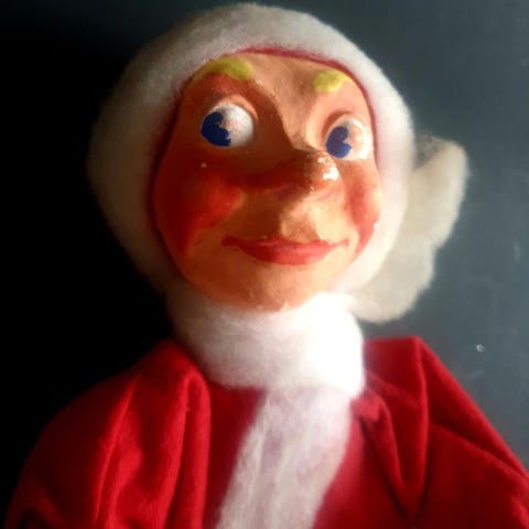 Hel og med både skæg og sæk i behold. Jeg har ladet mig fortælle, at han er købt i Daells Varehus omkring 1970. Hel og fin.