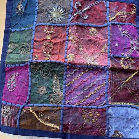 Sofaklæde, Ukendt, Lys sandfarvet / hørfarvet klæde; har været brugt over en sofa indtil den blev ombetrukket.
