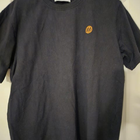Sort t-shirt med print i guld, sølv og kobber farver.