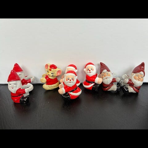 2 ældre keramikjulemand til at sidde på julelys, 2 ældre Keramik julemænd til at sidde på stearinlys på lysestager lysestage