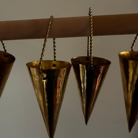 Tre i "guld" plastik (18 cm) og et i grønt (20 cm) til dekoration. Sælges samlet for 60 kr. Kan sendes med GLS! Betaling venligst med MobilePay.