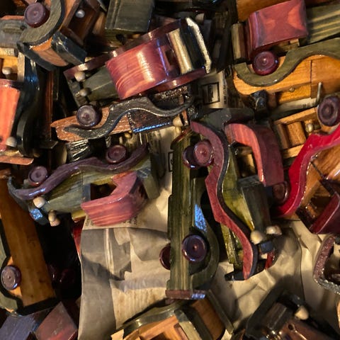13 super fede vintage Le Toy Vans i massiv træ