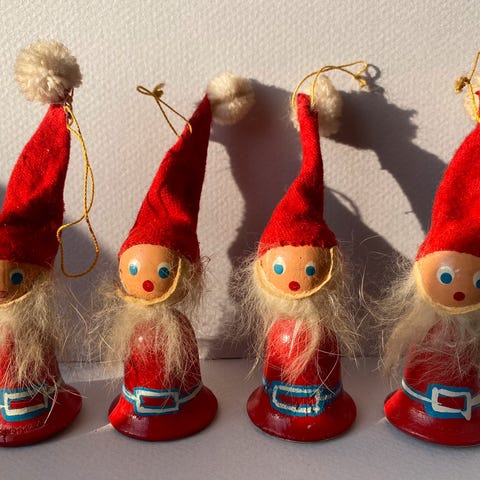 Klokkenisse- par, Klokkenisser med træsko og slaskeben man kan ligge som man vil Sidder flot på en hylde eller i en reol sæt med 1nissemor og 1 nissefar har også nogle med fuldskæg i stedet for halstørklæde