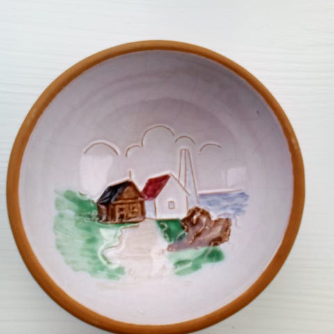 Keramik, Stor skål fra Johgus, Bornholm, Stor skål fra Johgus på Bornholm. Den er lavet i en fantastisk flot grønglaseret rødler med sort ydre.