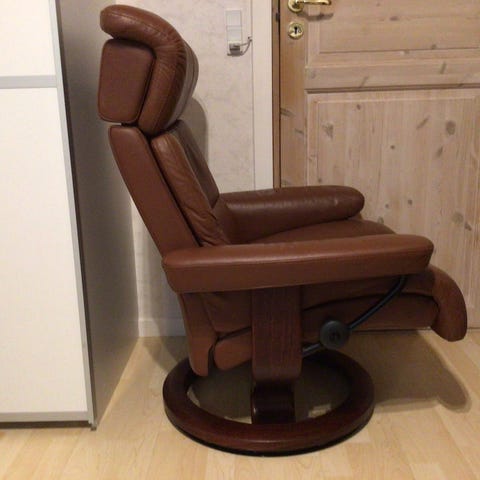 Hvilestol, læder, Stressless, Lækker stressless læne/hvilestol fra hjem uden røg eller dyr, stolen er i super stand uden hverken mærker eller skrammer, farven på læderet er mørke grå .
