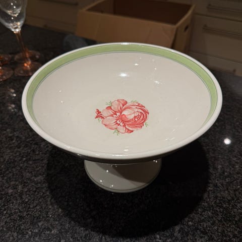 Desværre revne i selve skålen hvis man kikker godt efter, men ikke noget man ser hvis der f.eks. er blomst eller frugt i skålen. Kan selvfølgelig også vendes ind mod væggen. Derfor den billige pris !